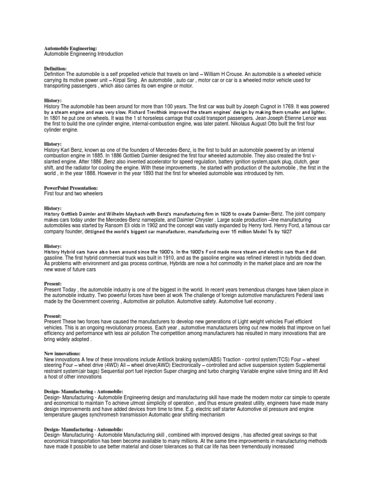 - Automobile Engineering : How To Use Automobile In A Sentence.